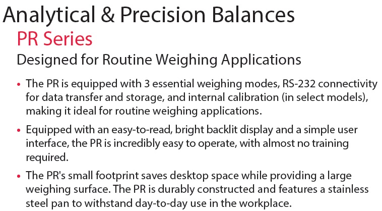 PR Series Analytical Balance, Designed for Routine Weighing Applications in Your Workplace