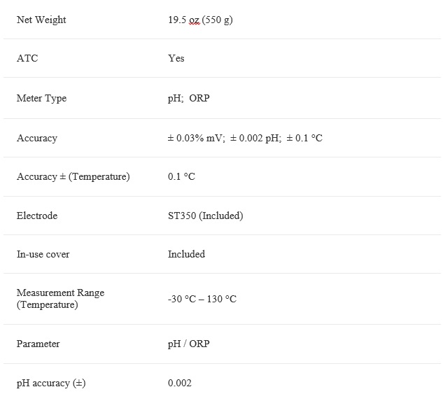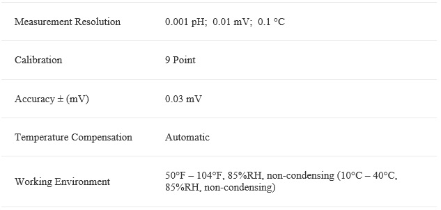 Measurement Resolution 0.001 pH;0.01 mV;0.1 °C